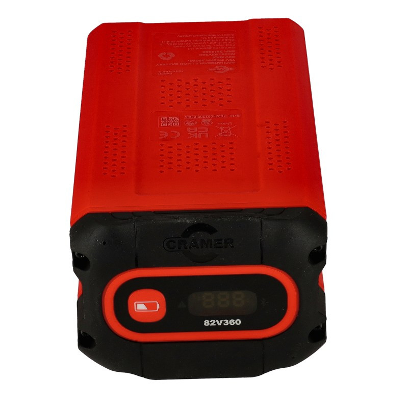 A Cramer 82V360 egy professzionális kivitelű, robusztus lítium-ion akkumulátor, amelyet intenzív, mindennapos használatra terveztek. Az 82 V-os rendszer és az 5,0 Ah kapacitás ideális egyensúlyt biztosít a teljesítmény és az üzemidő között, így kiválóan alkalmazható munkahelyi és kerti feladatok során egyaránt.
