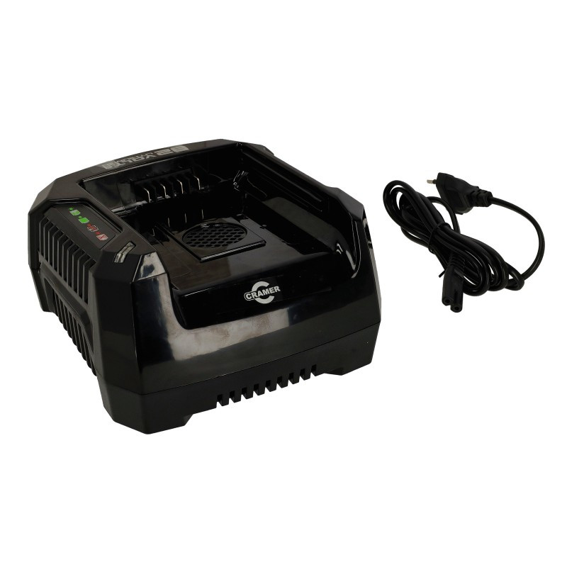 A töltő beépített akkumulátorhűtéssel és LED-es töltésállapot-jelzővel van ellátva, amelyek biztosítják a hatékony és megbízható töltési folyamatot. A készülékhez levehető EU és UK tápkábelek tartoznak, és teljes mértékben kompatibilis az összes Cramer 82 V-os professzionális akkumulátorral.