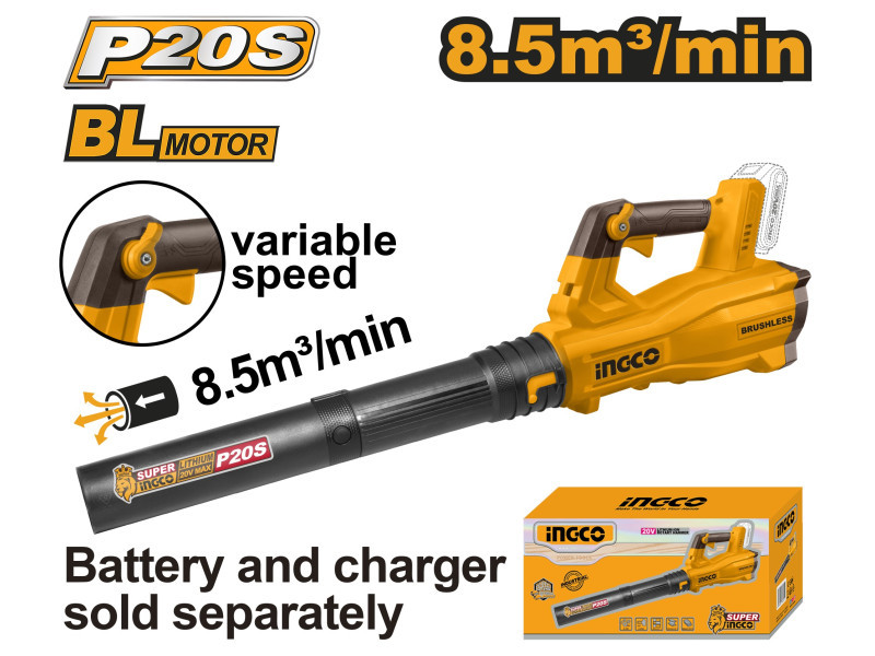 INGCO 20 V akkus szénkefe nélküli lombfúvó (akku és töltő nélkül)