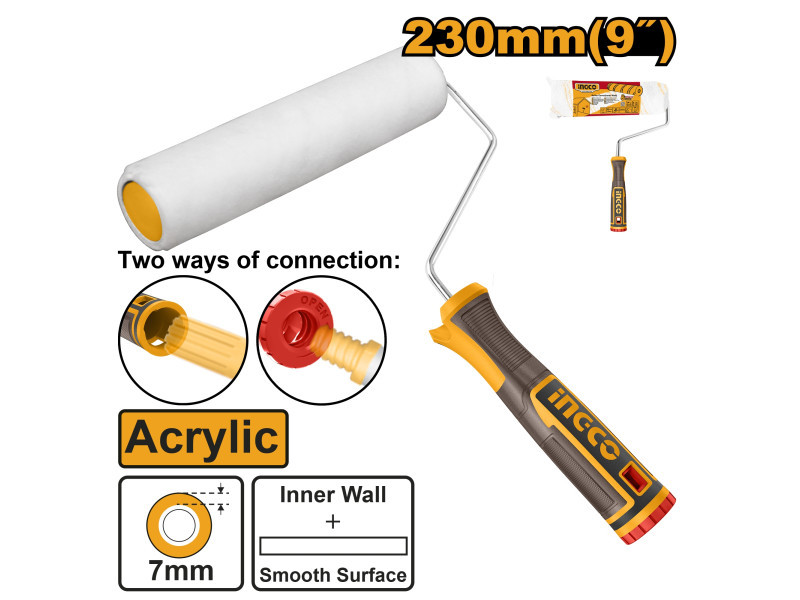 INGCO akril festőhenger nyéllel – 230 × 7 × 6 mm, lágy fogantyús