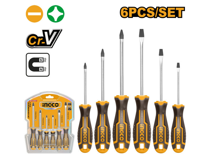 INGCO Csavarhúzó készlet 6 részes mágneses CrV