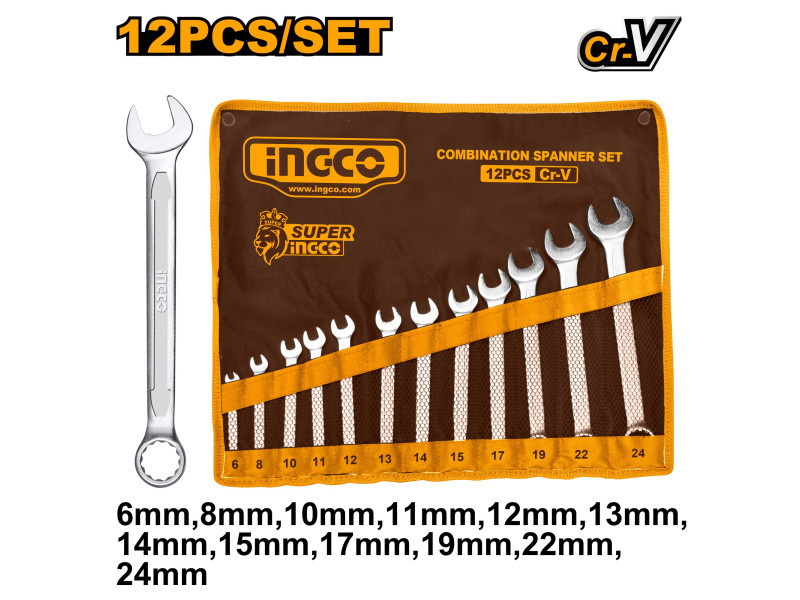 INGCO Csillag-villáskulcs készlet 12 részes 6-24 mm CrV