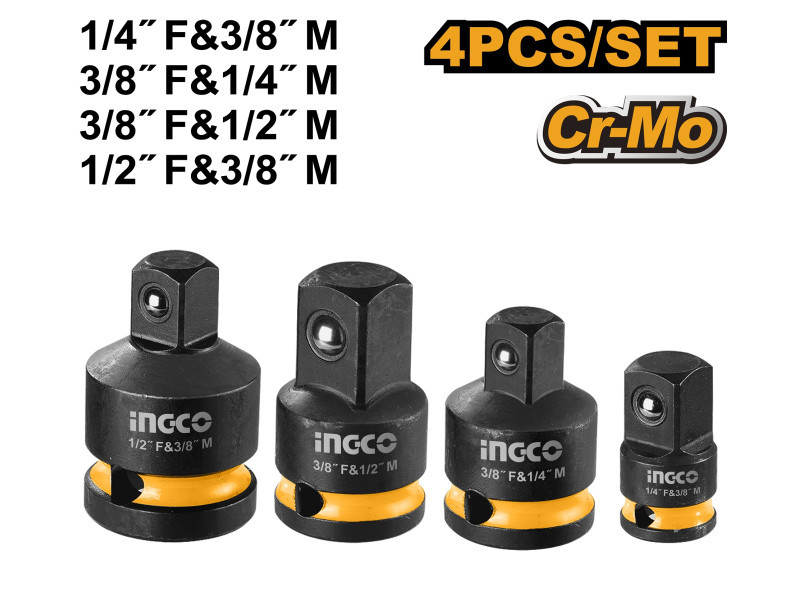 INGCO Dugókulcs adapter 4 részes 1/4"<-->3/8", 1/2"<-->3/8"