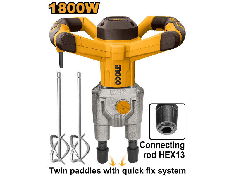 1800 W építőipari keverőgép – dupla keverőfejjel, 6 fokozatú szabályozással