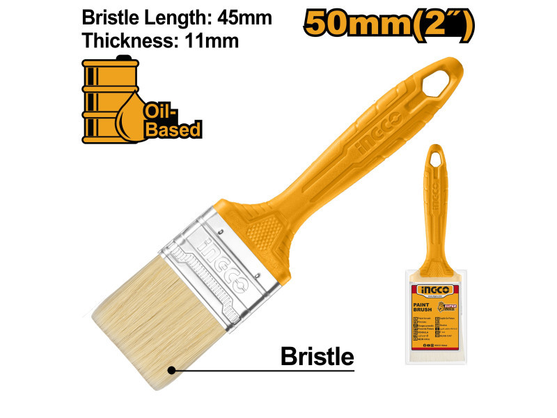 Az INGCO 2 colos festőecset festési munkákhoz készült, ahol fontos a költséghatékony megoldás és az egyenletes felhordás. Egyszer használatos kialakítása és üreges nyele praktikus választássá teszi, miközben finom festési hatást biztosít.