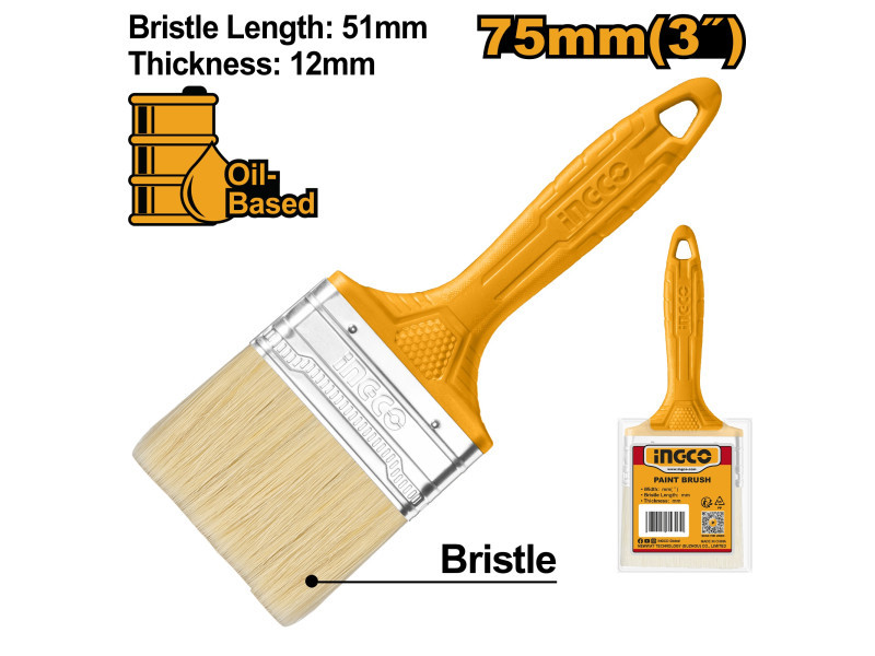 Az INGCO 3 colos festőecset festési munkákhoz készült, ahol fontos a költséghatékony felhasználás és az egyenletes festékfelhordás. Egyszer használatos kialakítása és üreges nyele praktikus megoldást kínál, miközben finom festési hatást biztosít.