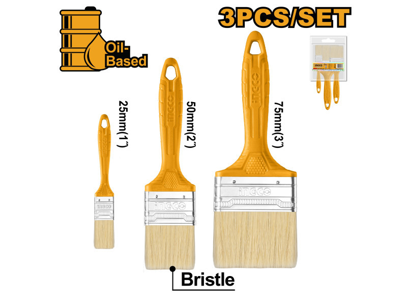 Az INGCO 3 részes ecsetkészlet festési munkákhoz készült, költséghatékony megoldást kínálva kisebb és nagyobb felületek festéséhez egyaránt. Az üreges nyelű ecsetek és a speciálisan kialakított markolatok kényelmes használatot biztosítanak, miközben finom festési hatást eredményeznek.
