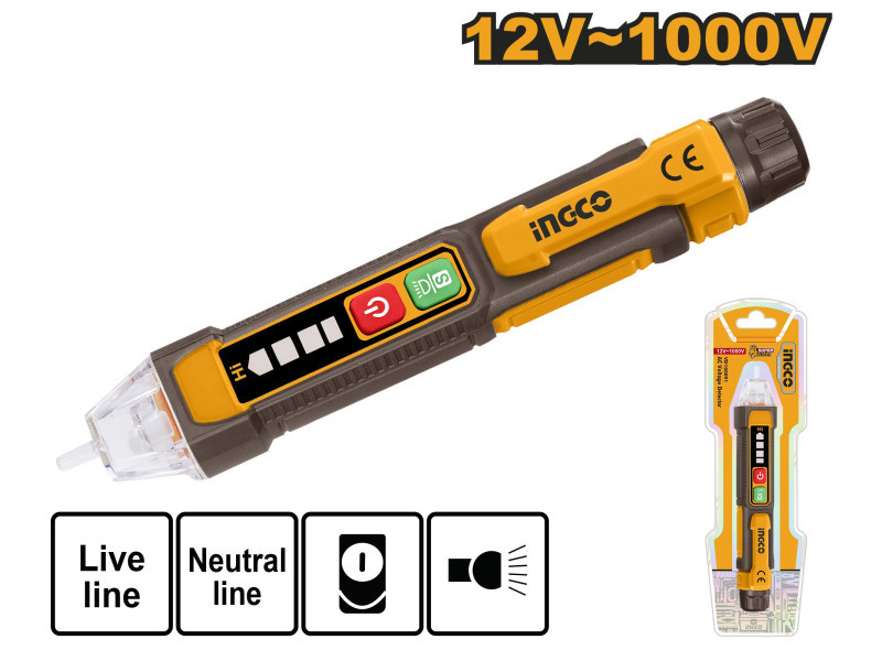 INGCO fáziskereső – érintésmentes mérés, 12–1000 V, szigetelt (VD100091)