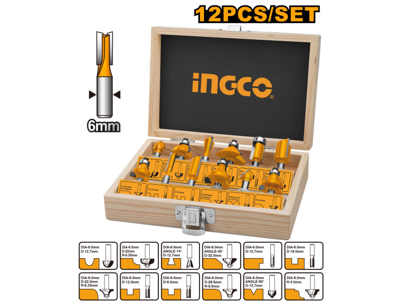 INGCO felsőmaró készlet – 12 részes, 6 mm