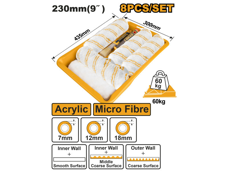 INGCO festőhenger szett – 8 részes, 230 × 6 mm