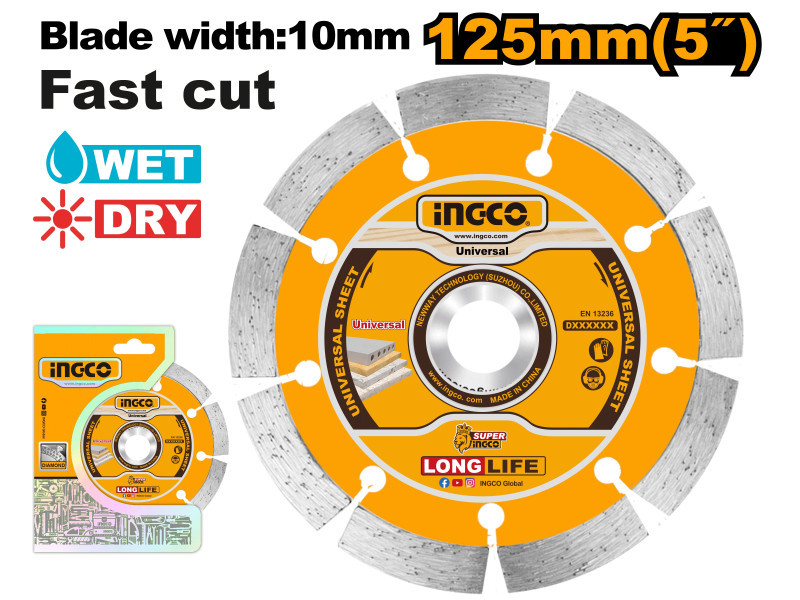 INGCO gyémánt vágókorong – 125 × 10 × 22,2 mm, szegmentált