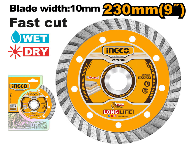 INGCO Gyémánt vágókorong 230 x 10 x 22,2 mm turbó