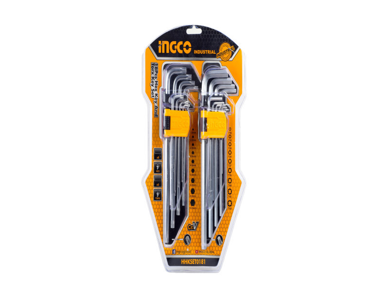 INGCO Hosszú torx és imbuszkulcs készlet 18 részes