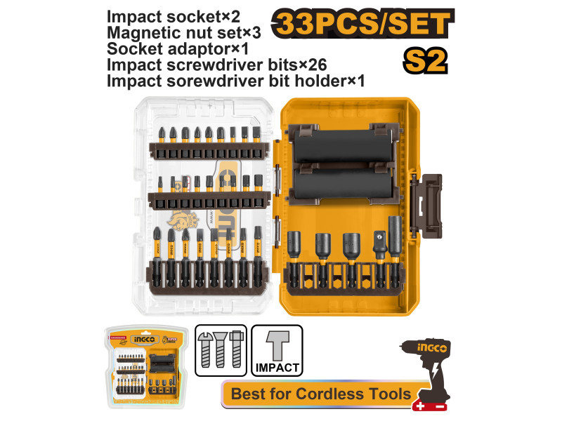 INGCO 33 részes Impact bithegy készlet – S2 acél