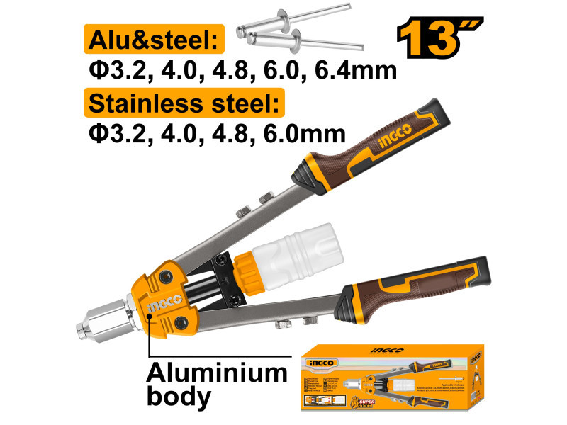 Kézi szegecshúzó – 330 mm (acél + alumínium)