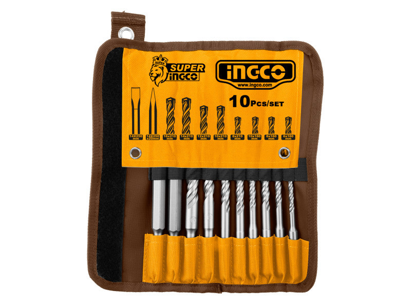 INGCO kőzetfúró és vésőszár készlet – 10 részes, SDS-Plus