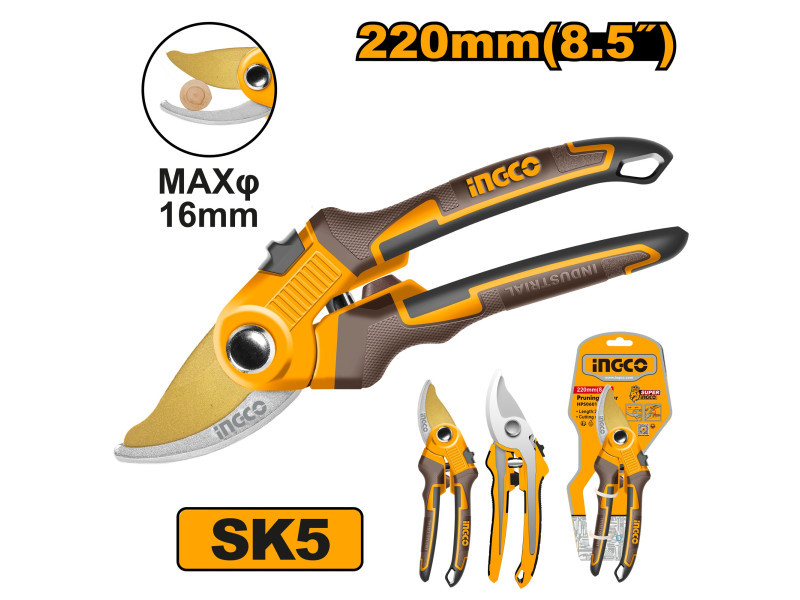 Az INGCO 220 mm-es metszőolló ideális eszköz virágok, cserjék, gyümölcsfák ágai és cserepes növények dekoratív metszéséhez. Strapabíró, teljes fém vázas kialakítása hosszú élettartamot és stabil működést biztosít a rendszeres kerti munkák során.