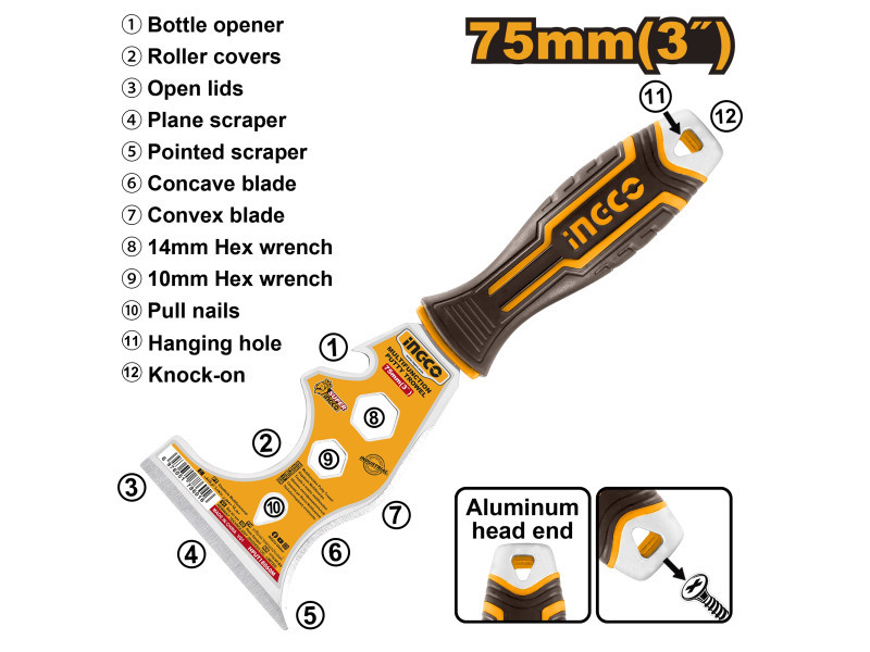 INGCO Multifunkciós spakli 75 mm inox lágy fogantyús