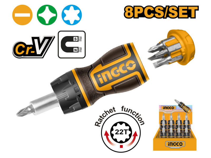 INGCO Racsnis csavarhúzó készlet 8 részes CrV