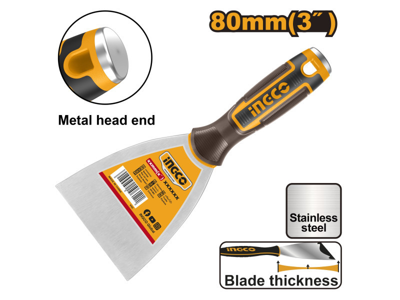 INGCO spakli – 80 mm (3"), inox, lágy fogantyús