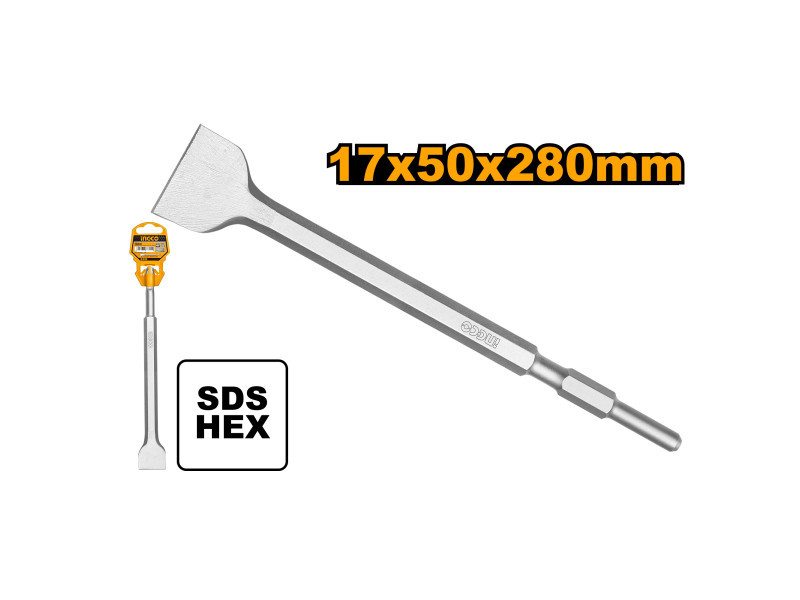 INGCO Széles vésőszár – 50 × 17 × 280 mm, SDS-HEX