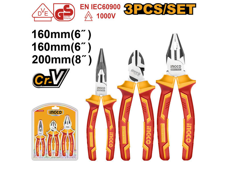 INGCO Szigetelt fogó készlet 3 részes 1000 V-ig szigetelt