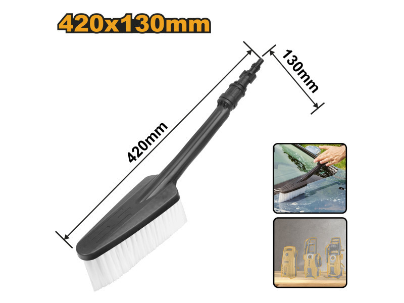 A kefe magasnyomású tisztításhoz használható, ideális autómosáshoz, padló- és területtisztításhoz, valamint fürdőszobai felületek hatékony tisztításához. Erős, tartós kialakítása hosszú élettartamot biztosít még rendszeres használat mellett is.