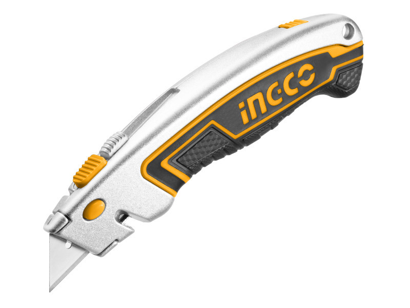 A trapézpengés kés kiválóan alkalmas kézműves munkákhoz, papír- és bőrvágáshoz, valamint általános műhely- és háztartási feladatokhoz. A pengeház kovácsolt alumínium ötvözetből készült, a markolat pedig TPR gumiborítást kapott, nagy szemcsés, csúszásmentes kialakítással, amely biztos és kényelmes fogást nyújt, valamint hatékonyan elnyeli az izzadságot.