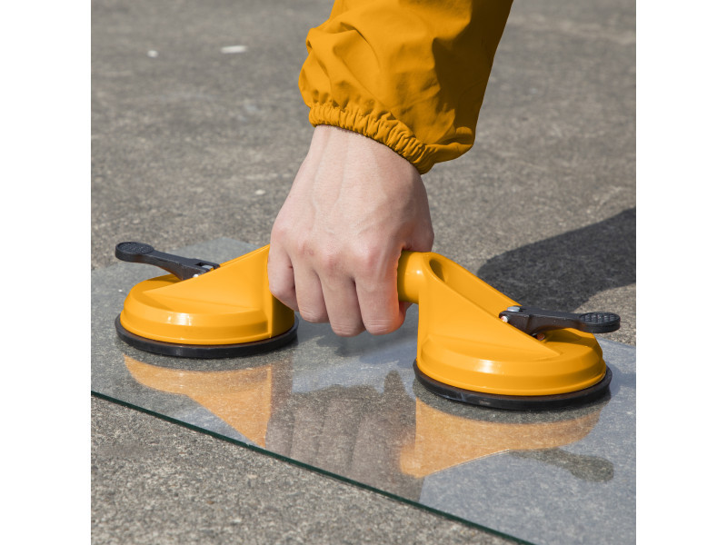 Megbízható és erős üvegtábla fogó sima, nem porózus felületek biztonságos emeléséhez és mozgatásához, például üveg, fém vagy gránit esetén.