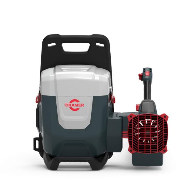 A rendszer különösen sokoldalú: a fúvócső eltávolításával a hátizsákos akkumulátor más Cramer 82 V-os gépekhez is csatlakoztatható adapter és kábel segítségével. A két akkumulátor egyidejű használatának lehetősége jelentősen megnöveli az üzemidőt, így egész napos munkavégzés is megoldható megszakítás nélkül.
