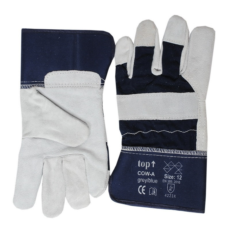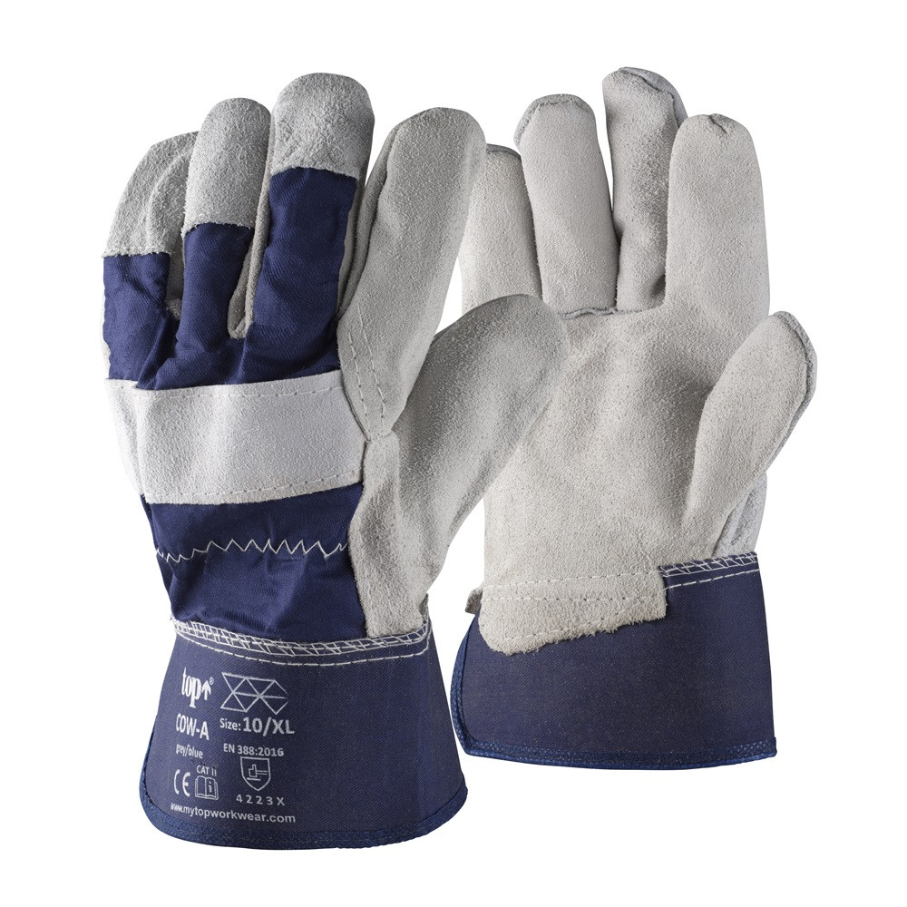 Marhabőr munkavédelmi kesztyű – pamut kézháttal, TOP COW-A, fehér/sötétkék, 10-es méret