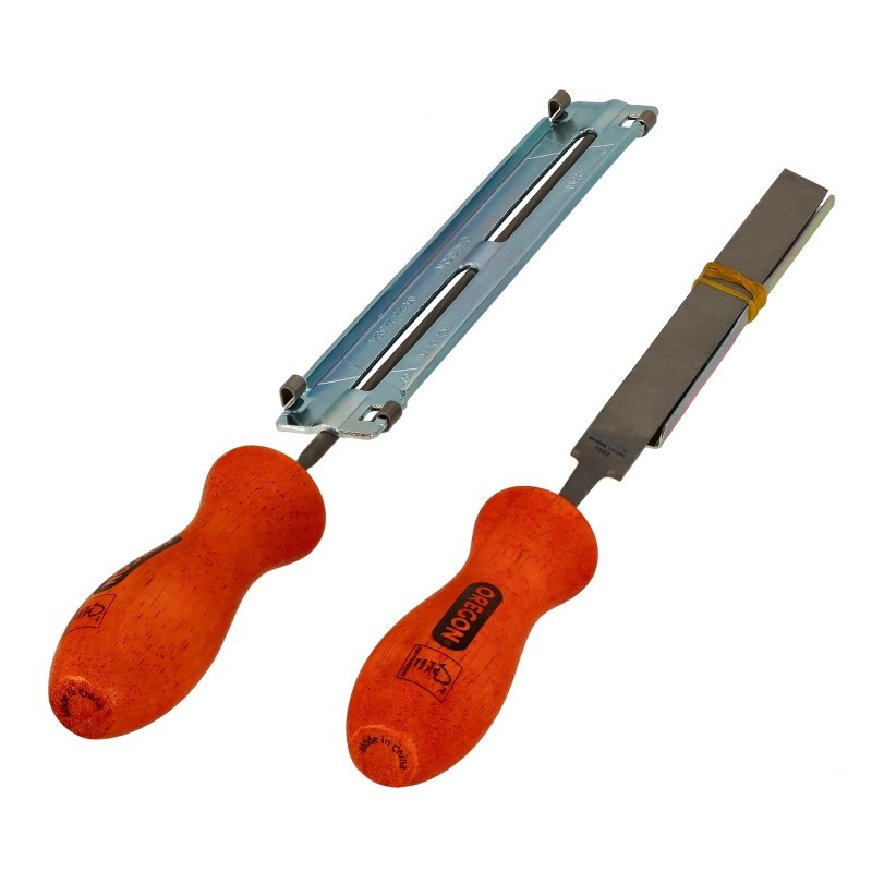 A szett segítségével könnyedén elvégezhető a lánc vágóéleinek karbantartása, a mélységhatárolók beállítása és a vezetőlemez tisztítása, ezáltal hosszabb élettartamot és jobb teljesítményt biztosít a láncfűrésznek.