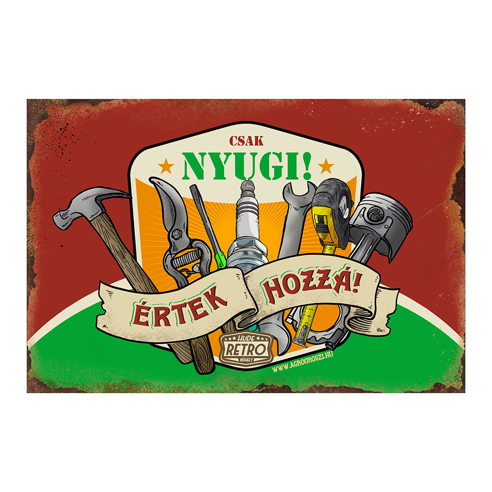 Retro fémtábla - Csak nyugi, értek hozzá - bordó-zöld - A4 - 20x30 cm - PREMIUM