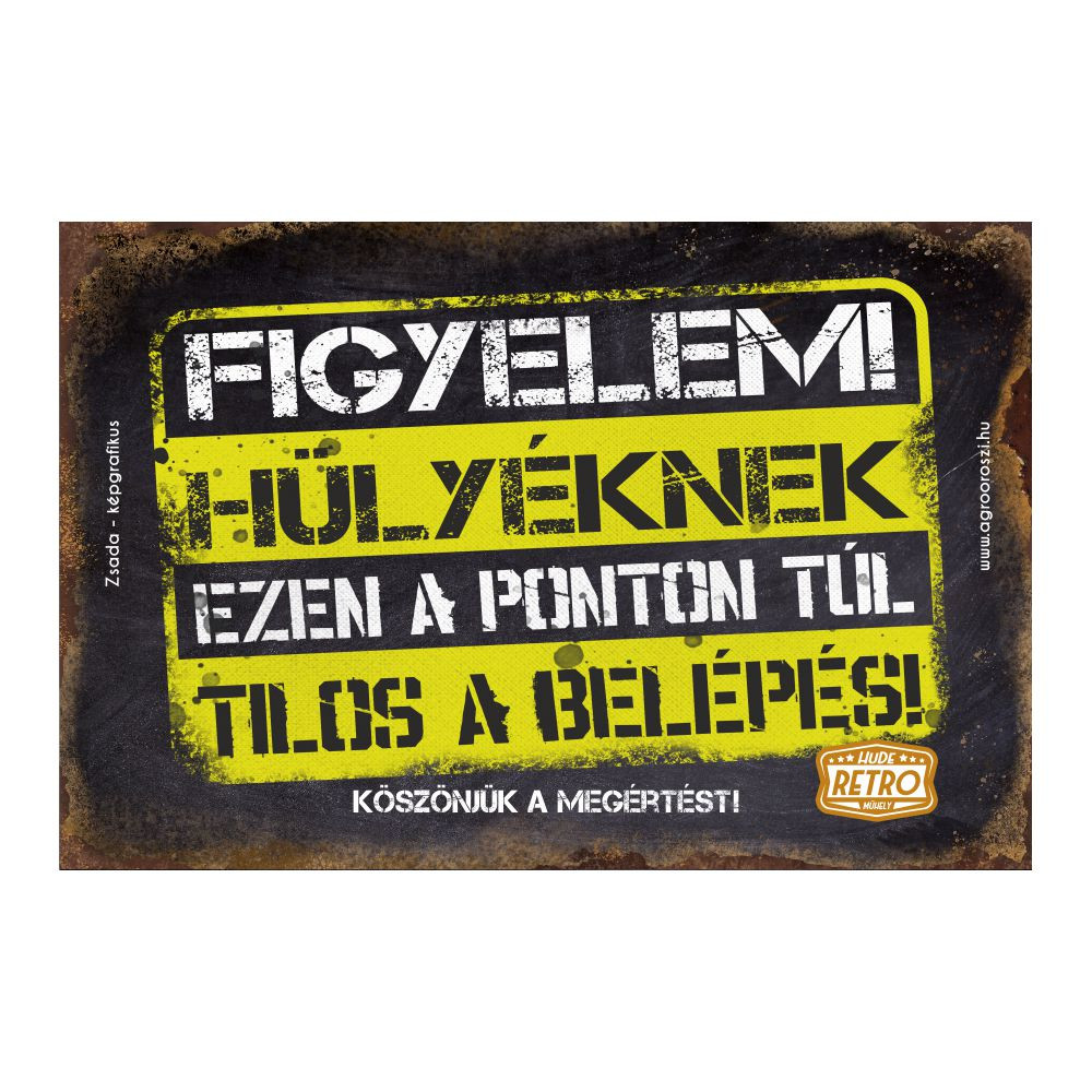 Retro fémtábla - Figyelem! Hülyéknek ezen a ponton túl - A4 - 20x30 cm - PREMIUM