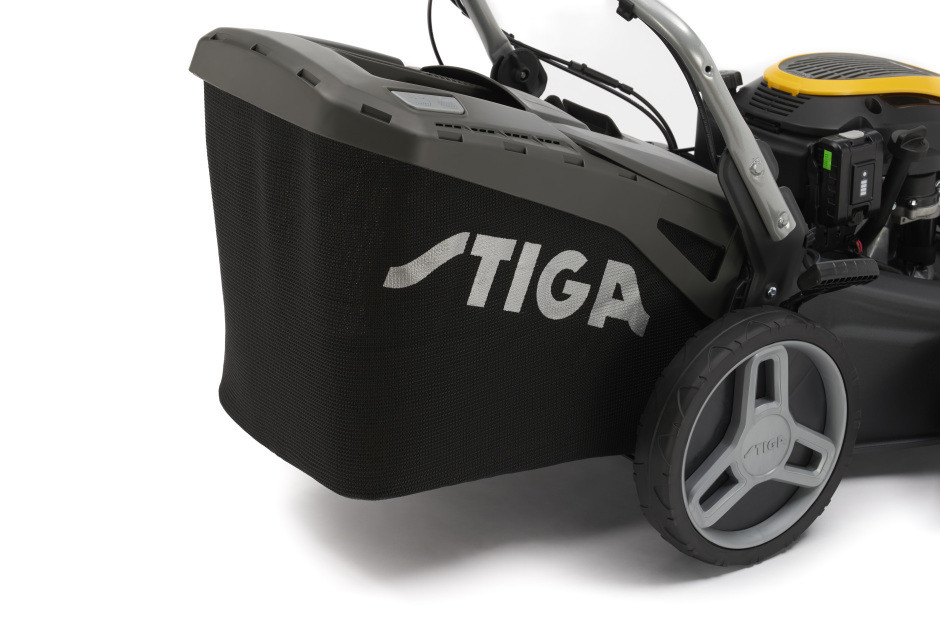 Az állítható tolókar és a központi vágásmagasság-állítás kényelmes használatot biztosít, míg az erőteljes STIGA motor megbízható teljesítményt nyújt közepes méretű kertek karbantartásához.