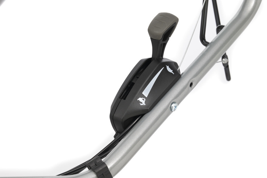 Az 53 cm vágásszélességű, porszórt festésű robusztus fémház stabil működést és hosszú élettartamot biztosít. A 70 literes, telítettségjelzővel ellátott fűgyűjtő nagy kapacitást kínál a fűnyesedék összegyűjtéséhez.