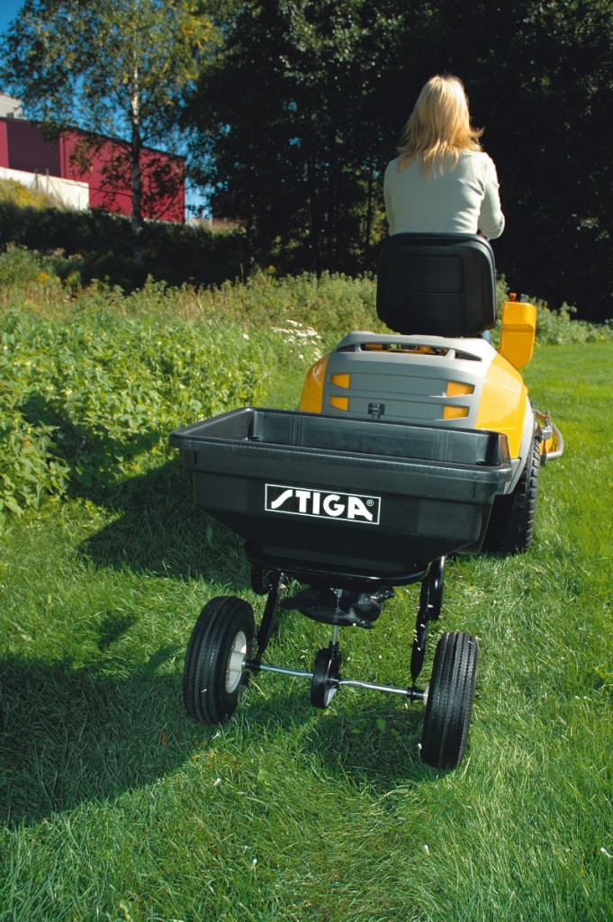 A STIGA műtrágyaszóró praktikus és hatékony kiegészítő fűnyíró traktorokhoz és frontkaszás modellekhez, amely megkönnyíti a gyep tápanyag-utánpótlását.