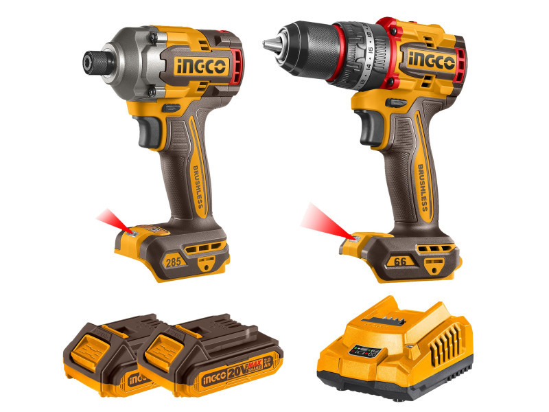 INGCO Akkus erőcsomag 20 V Ütvefúró-csavarozó 66 Nm+Ütvecsavarozó 1/4" 285 Nm (2 db akku + töltő)