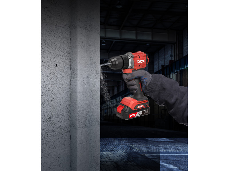 DCK Akkus ütvefúró-csavarozó 60 Nm szénkefe nélküli 20 V (1 x 4,0 Ah akku + töltő)