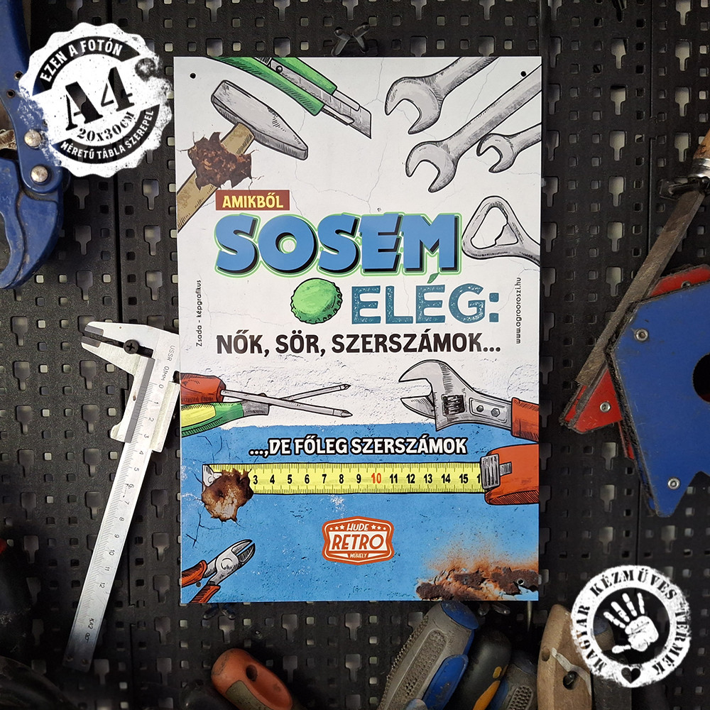 Ez a fémtábla különösen jó ajándék mindazok számára, akik értékelik a műhelyükben felhalmozott szerszámokat. Akik a boltba nem a kenyeret, hanem a villáskulcsot rakják előbb a kosárba. Ideális dekoráció lehet garázsban, műhelyben, vagy akár díszítheted vele a nappalidat is. Tökéletes ajándék mindazoknak, akik szerelnek, barkácsolnak, bütykölnek stb. Autószerelőknek, asztalosoknak, kertigép szerelőknek egyaránt.