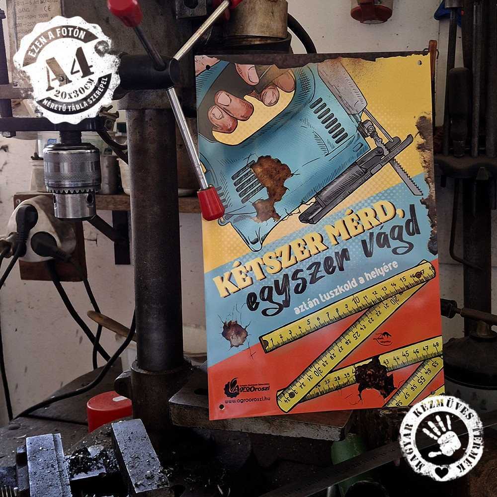 Ez a fémtábla különösen jó ajándék mindazok számára,  akik szeretik a praktikus és humoros képeket. Ideális dekoráció lehet garázsban, műhelyben, de tedd bárhová ahol neked tetszik. Tökéletes ajándék mindazoknak, akik szerelnek, barkácsolnak, bütykölnek stb. Barkácsolóknak, asztalosoknak, bárkinek aki mérőszalaggal dolgozik.