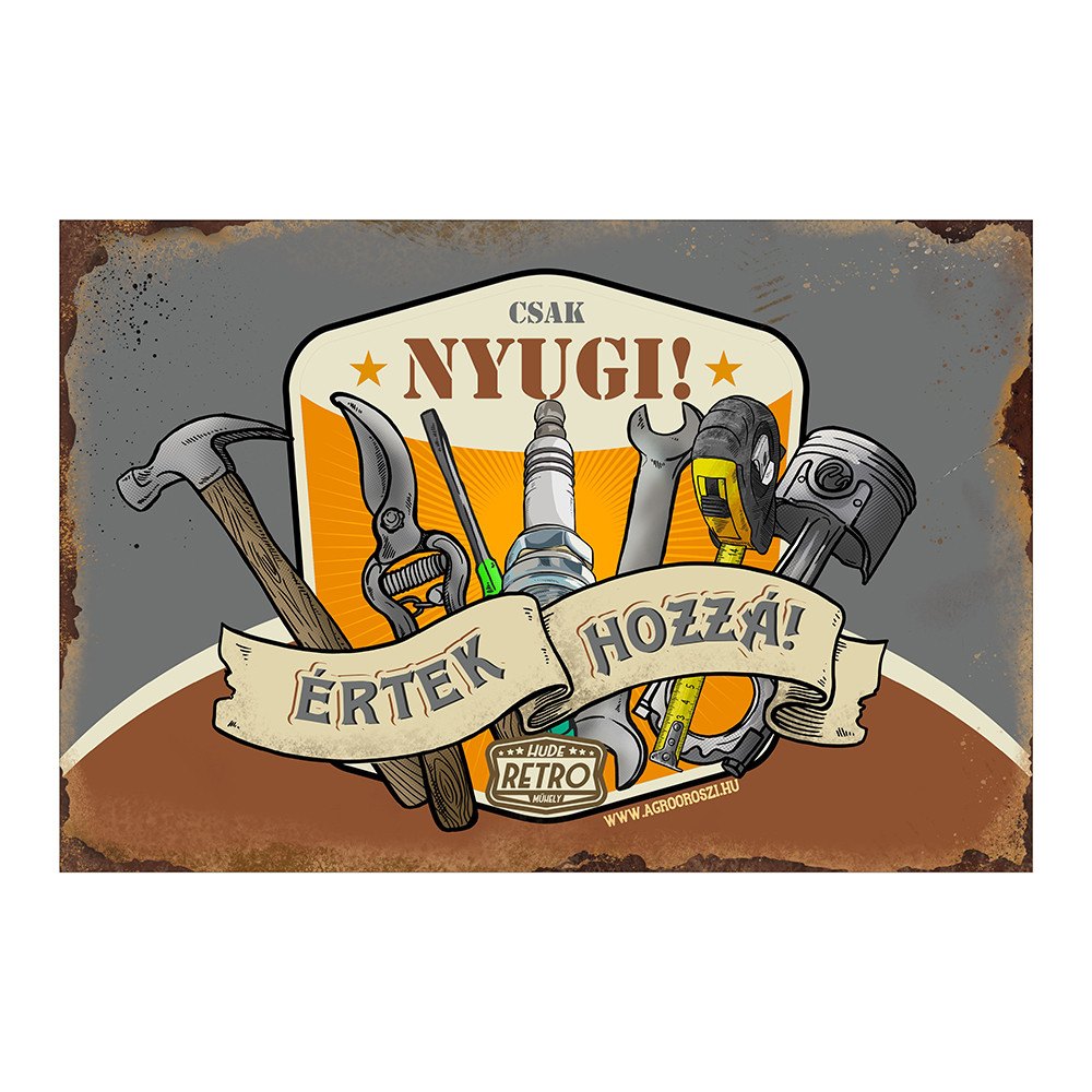 Retro fémtábla - Csak nyugi, értek hozzá - szürke-barna - A4 - 20x30 cm - PREMIUM