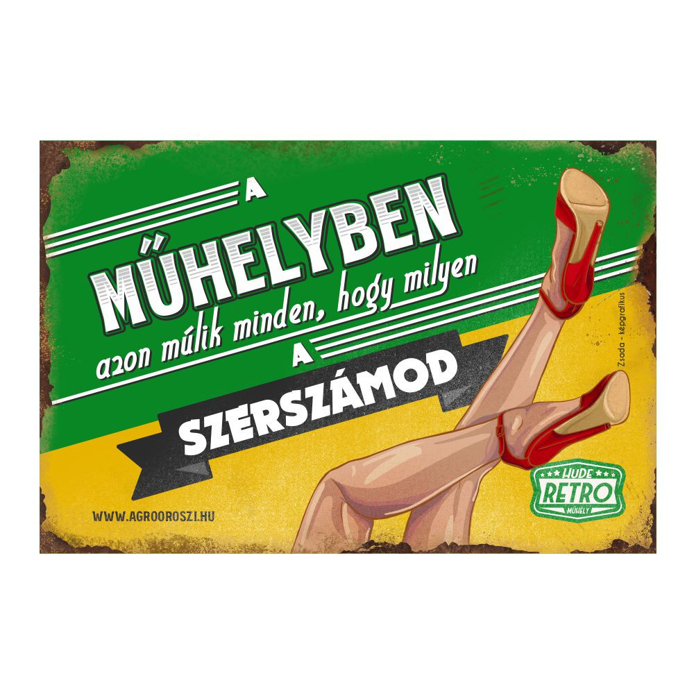 Retro fémtábla - A műhelyben azon múlik minden - zöld - A4 -20x30 cm - PREMIUM