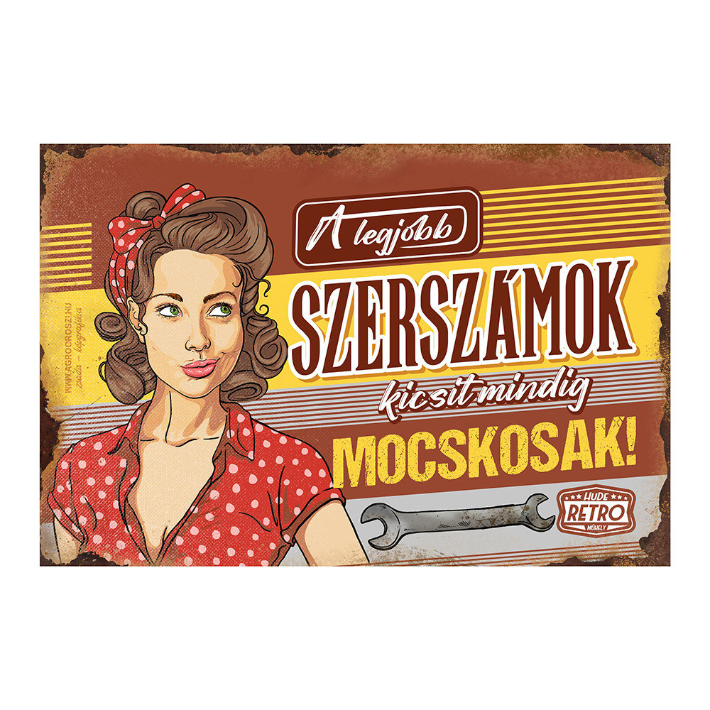 Retro fémtábla - A legjobb szerszámok néha kicsit mocskosak - bordó - A4 -20x30 cm - PREMIUM