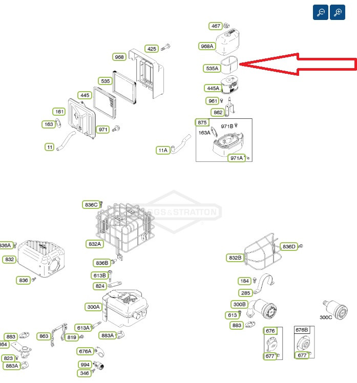 Briggs & Stratton modellekhez: 110402, 110412, 111432, 120232, 120312, 120332, 121232, 121602, 121607
